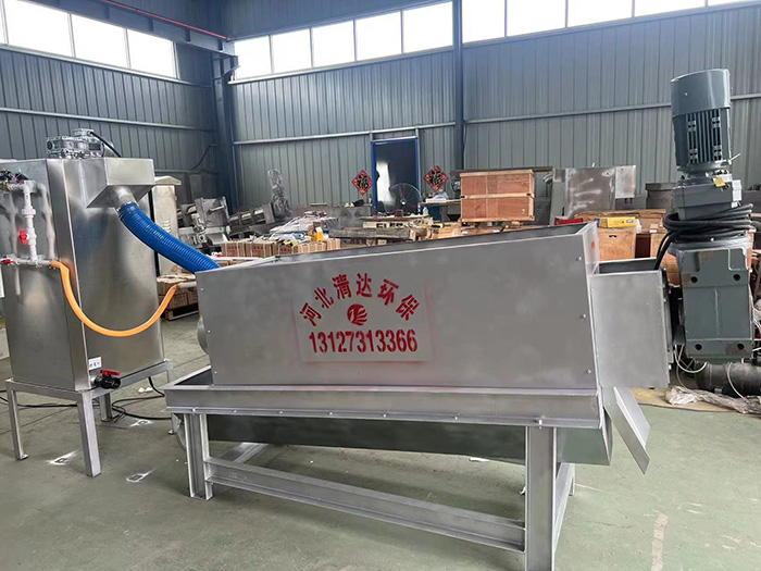 3、通過螺旋主軸的旋轉將過濾的污泥由濃縮部向脫水部緩慢移動,并且在重力和螺旋擠壓的作用下水分從游動環和固定環之間析出,同時螺旋主軸的旋轉會帶動定環不斷做圓周運動清理濾縫之間的殘渣,防止濾縫堵塞。